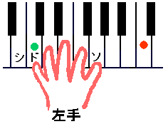 赤文字・青文字のところで弾いた左手を